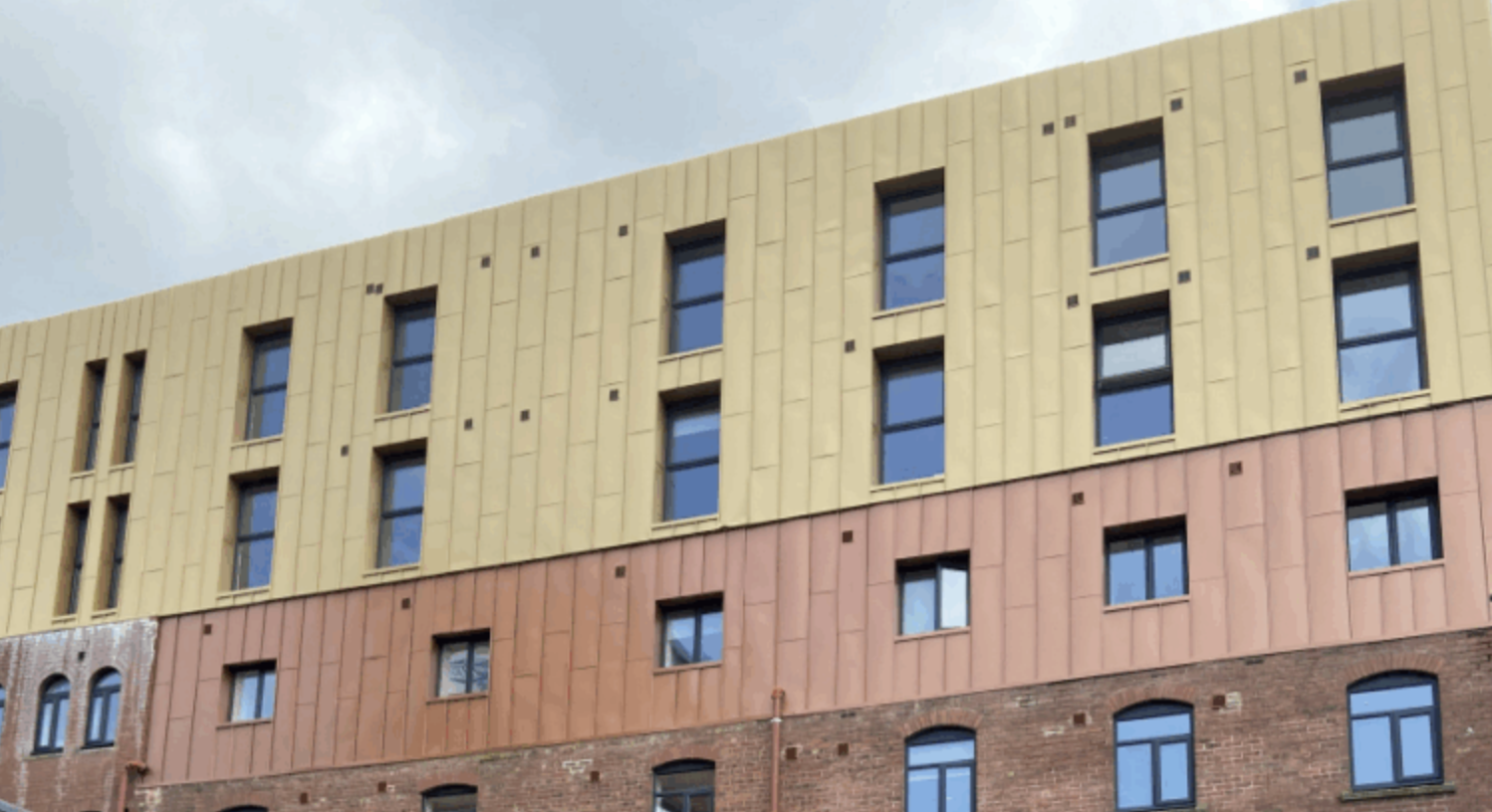 Picture: a photograph of the exterior of the warehouse redevelopment in Preston, showing exterior panels, brickwork and some windows. Image Credit: HSE