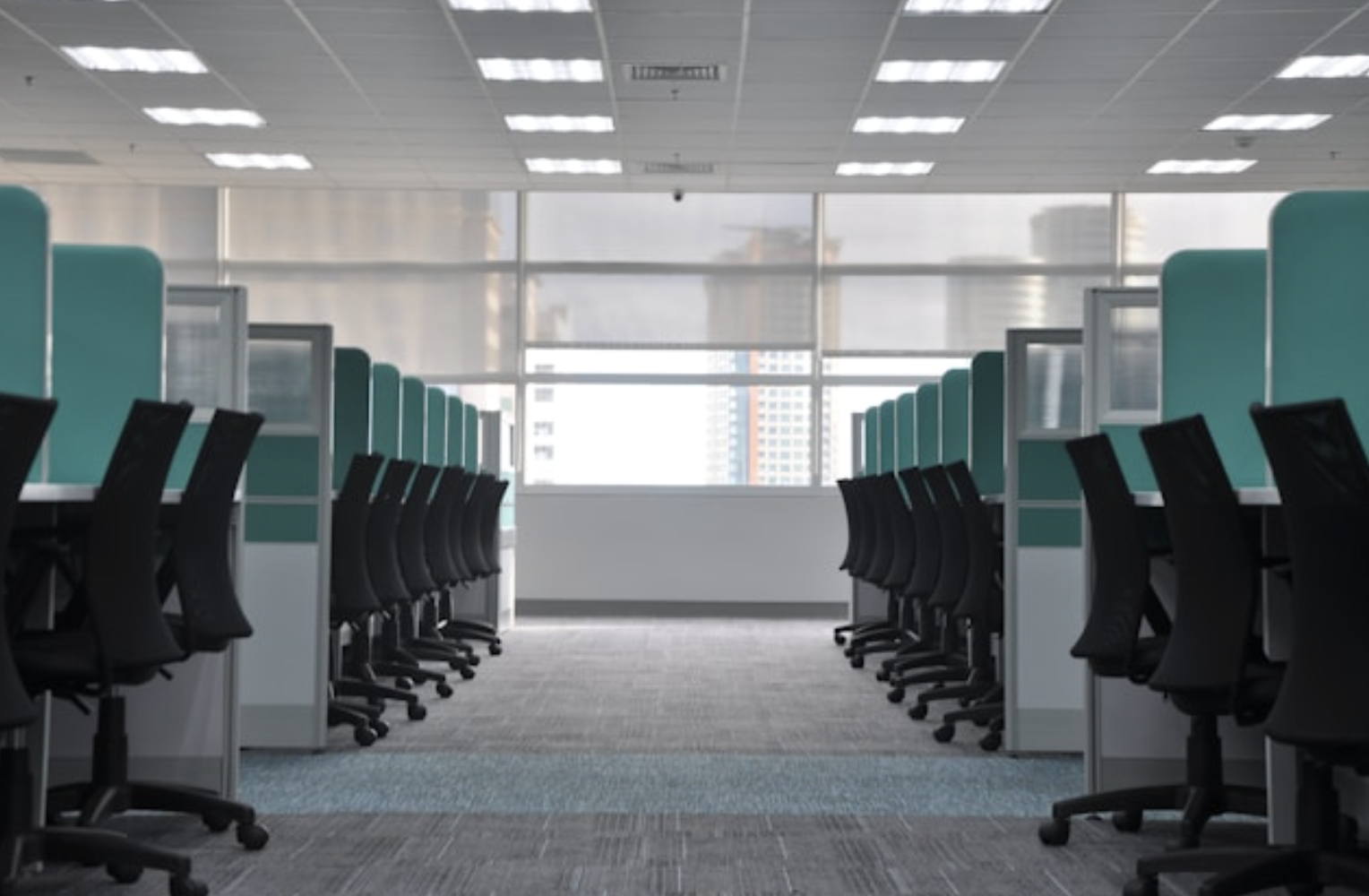 Picture: a photograph showing rows of empty desks on either side of a walkway. Image Credit: Unsplash